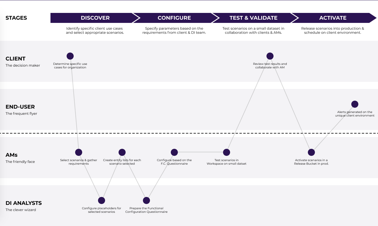 Define a long-term vision to help users find actionable insights. Focus on improving the configuration workflow to enable users to aggregate, analyze, and act to prevent regulatory breaches.