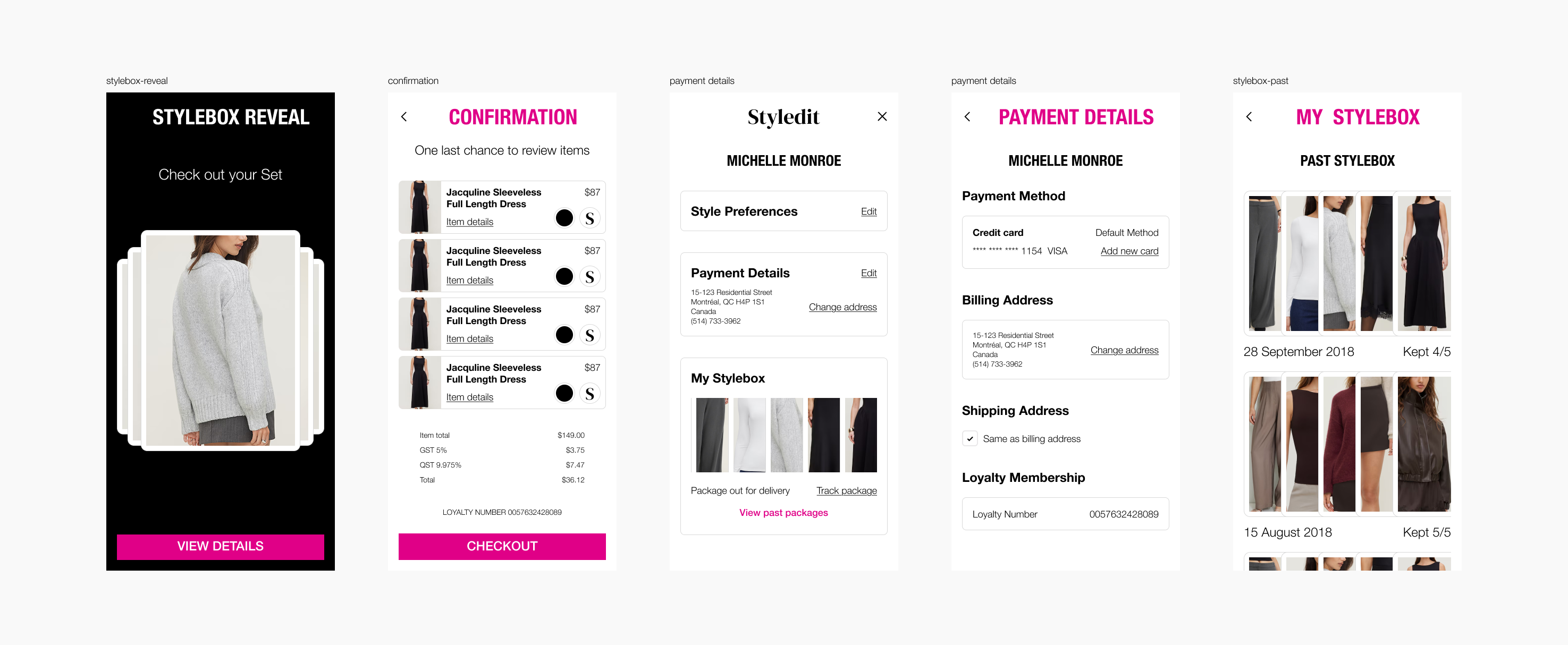 This particular project was designed an in app experience exclusive for premium loyalty members. As the two GDI brands sharing the app have quite different branding, it was challenging to find a balance between them. Fortunately, we could all agree that pink was the best choice for our primary CTA color. This decision made it easy to keep all other colours fairly neutral.