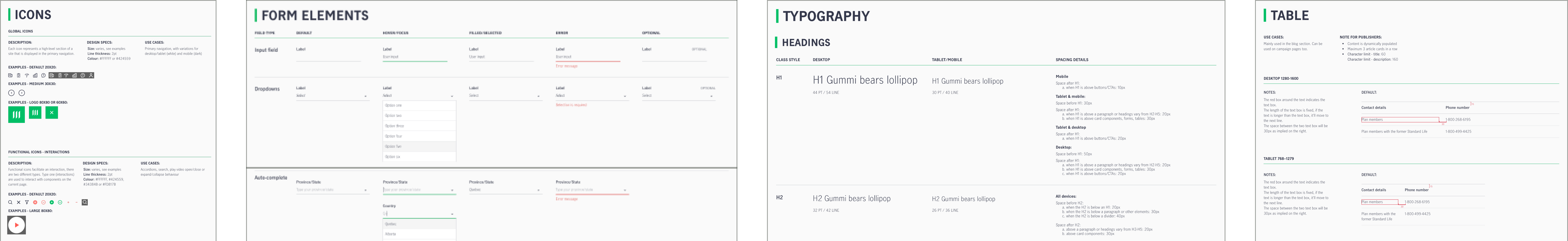 We determined that the primary site, Manulife.ca, would be our first target to launch the system. This would allow us to have a significant impact across business units, provide a wide range of template styles to help us develop our components, and would set the tone for how the design system would be used in the future.