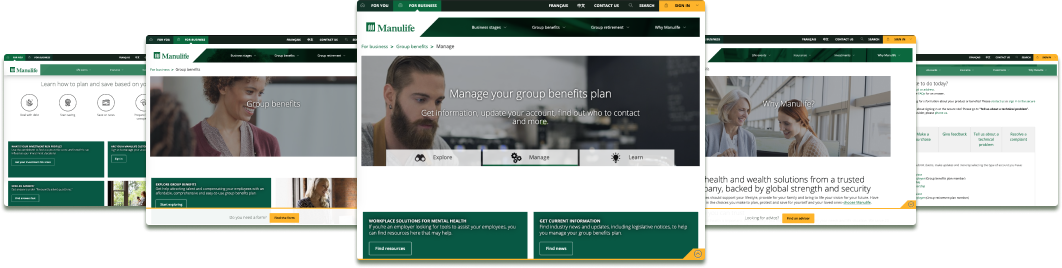 We determined that the primary site, Manulife.ca, would be our first target to launch the system. This would allow us to have a significant impact across business units, provide a wide range of template styles to help us develop our components, and would set the tone for how the design system would be used in the future.